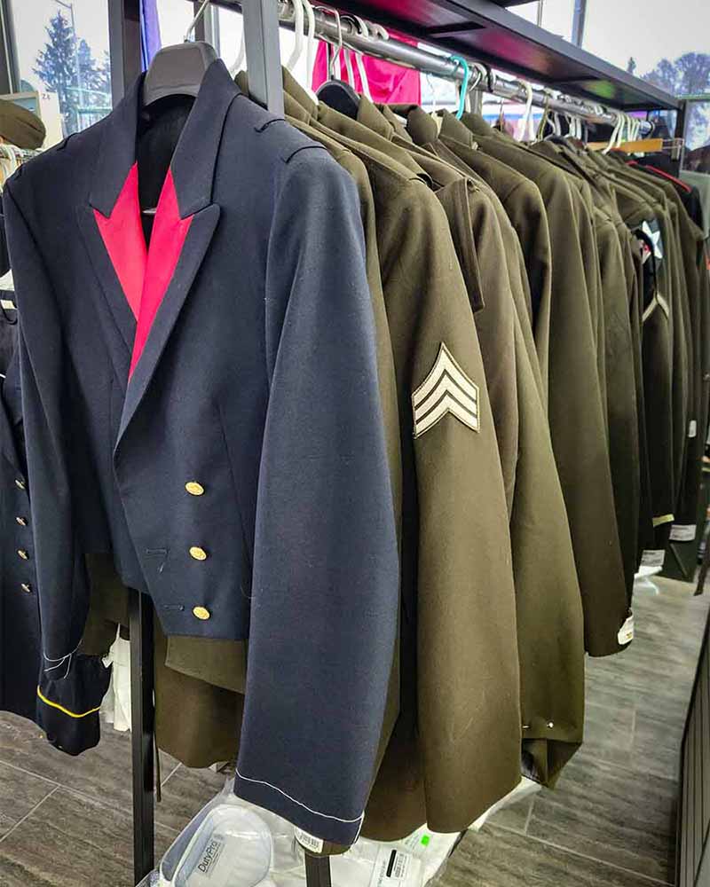 Quality sewing holds your uniform together, displays awards correctly, and maintains flag forms. Our shop handles military sewing, badges, patches, and repairs. Contact us for quotes.